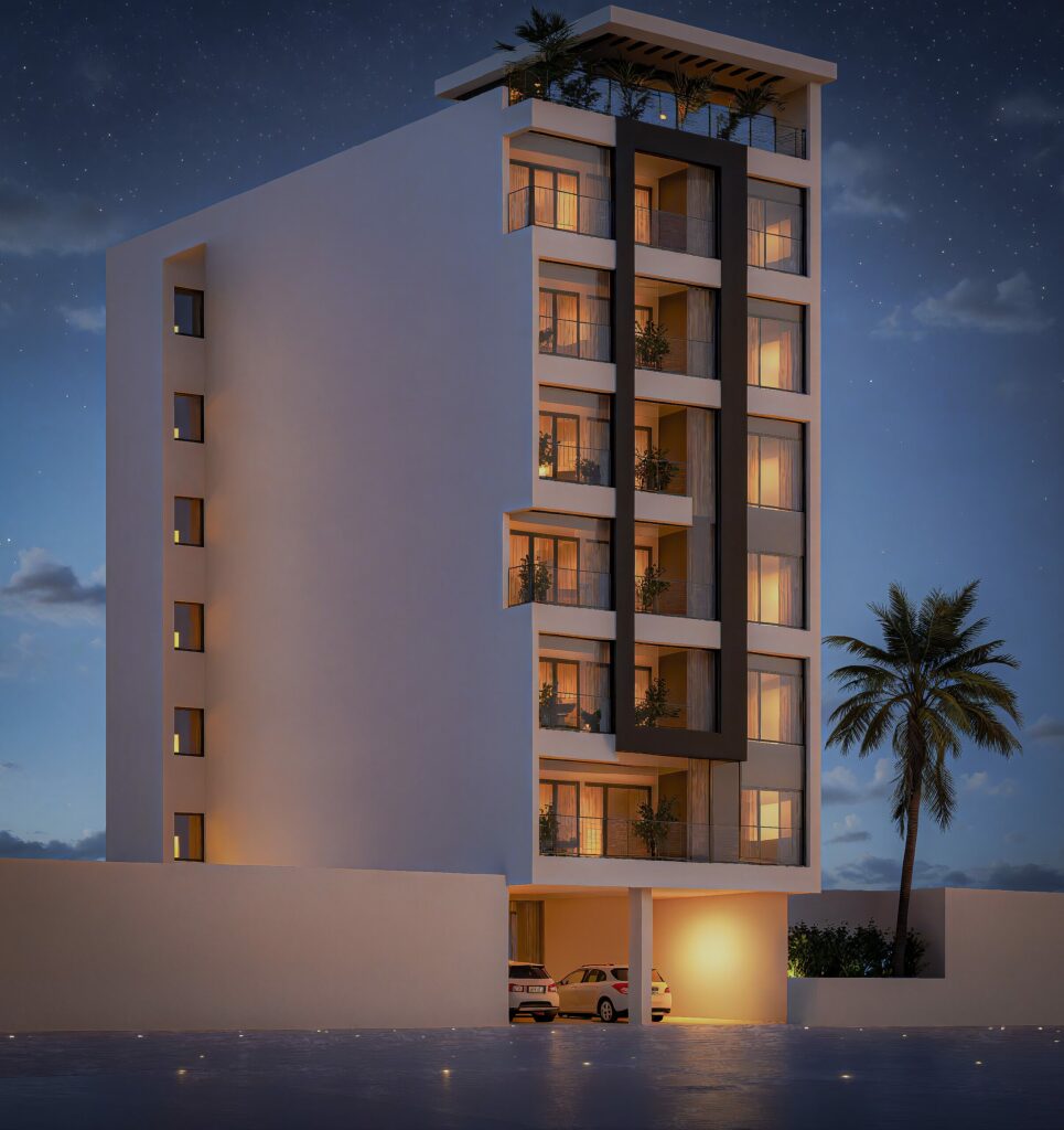 Érigée sur R+6 étages avec terrasse aménagée, cette réalisation d’envergure abrite 26 appartements spacieux et lumineux, conçus pour répondre aux exigences de confort et de style les plus élevées.